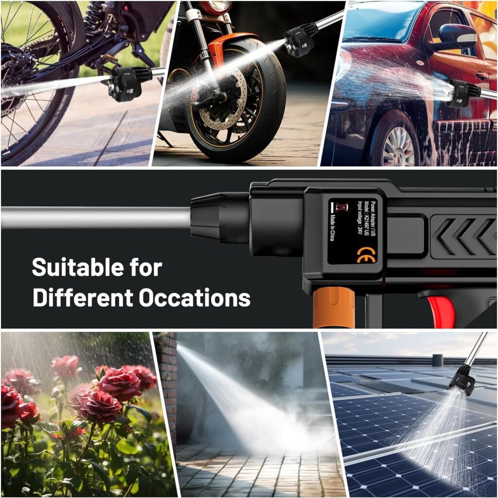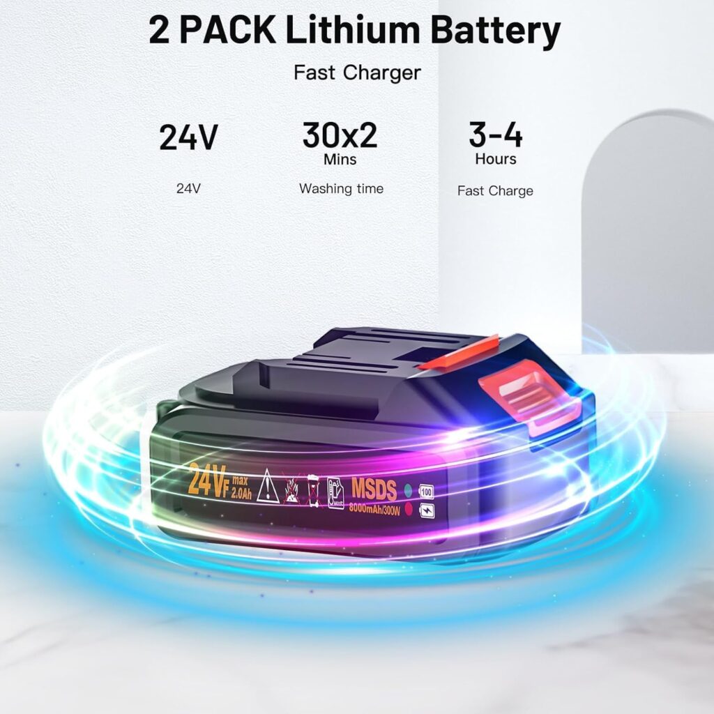 Ultimate Portability and Freedom: Say goodbye to tangled cords and limited reach. This washer’s cordless design lets you clean anywhere, anytime. The included large-capacity lithium battery provides an impressive 200 minutes of continuous power on a single charge. Its detachable, portable design makes it easy to take with you and store away.