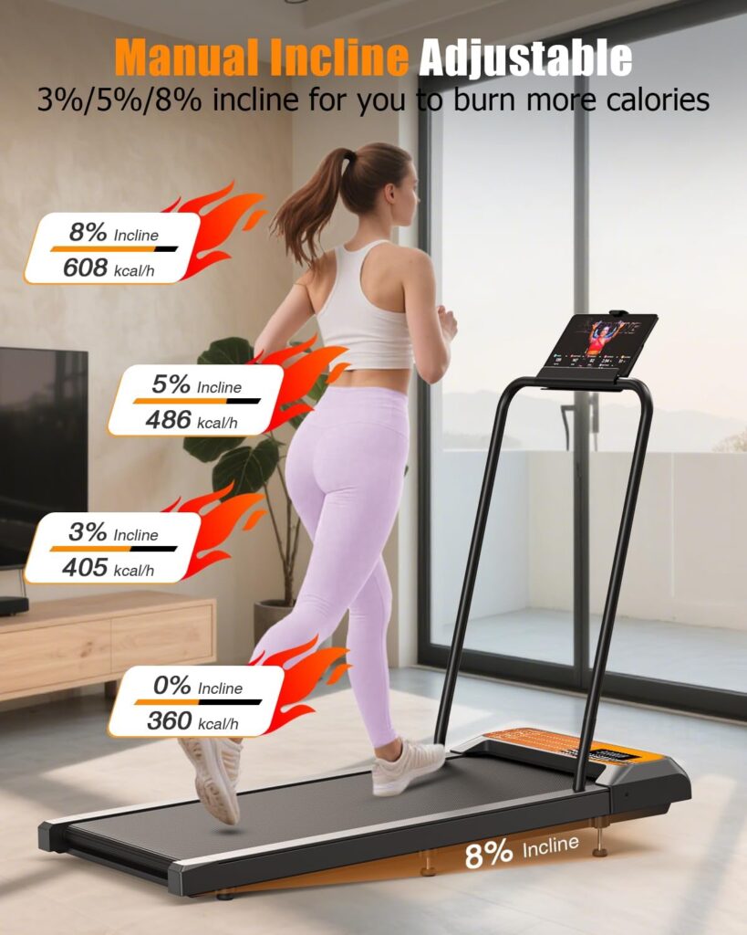Dual-Mode Functionality: Operates as an “Under-Desk Walker” (typically capped at 6km/h) when the handrail is folded, and a “Running Machine” (up to 12km/h or more) when the handrail is raised.